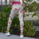 Huge Modern Watercolor Red Flowers with Leave Capri Leggings