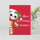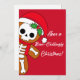 A skeleton gingerbread man on a red background. Send a smile with this cute holiday card.
