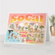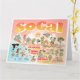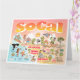 Bright and colourful scene offers a spectacular view of Southern California - wacky characters frolic on the beach and desert of SoCal showcasing Los Angeles, San Diego, Orange County, Santa Barbara, Riverside, Palm Springs, Anza Borrego and Joshua Tree parks as well as the border cities of Tijuana, Tecate and Mexicali. This charming scene has it all – a surfer hangs ten while a killer whale leaps out of the water, zoo animals greet the tourists, a muscular beach couple both flex to impress as a T-Rex roars a challenge and a tank moves into position and much more…