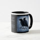 Huginn and Muninn, meaning Thought and Memory respectively, were the ravens of Odin the chief god of Norse mythology. Odin sent the ravens out each day to learn all that they could about what is happening in the nine worlds. At the end of each day Huginn and Muninn would return to Odin and tell him all that they had observed. This mug depicts the two ravens and has a short description in the middle of the design.
