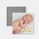 Your baby's photo is accented on this magnet with gold hugs and kisses, "xo's". It is a nice size to mail out and announce baby's arrival.