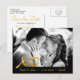 A large gold "XO" decorates your photo on this Save the Date Postcard, making it chic, trendy, romantic, elegant and glamourous all at once. Scroll down to see other coordinating items in the Hugs & Kisses Wedding Collection.