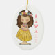 Adorable oval ornament with lovely country primitive artwork of a cute Hawaiian hula girl, text on the side reads Hawaii. Great Christmas tree ornament everyone will enjoy. Wonderful gift for anyone in Hawaii or as a keepsake from their trip there.