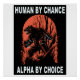 "Human By Chance, Alpha By Choice." It's a declaration of your strong and confident alpha wolf spirit, choosing to lead with resilience and determination. Leadership and Strength.