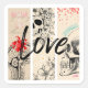 A beautiful drawing that includes a skull, flowers and many hearts crossed with the word love.