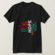 Humanity Word Cloud shirt features the words: enemy, corporations, hate, politics, love, money, empathy, hope, compassion, ideology, peace, friend, racism, greed, war, power, propaganda, and humanity in multi-coloured fonts and sizes.