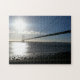 This jigsaw features an image of the Humber Bridge from the north shore of the Humber Estuary in Hessle.