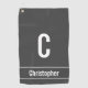 This plain and basic golf towel design has a custom name and initial letter. A golf towel like this might be a fun personalized gift for somebody who likes golf. [~Z0000440]