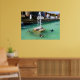 Humboldt penguins and fountains poster