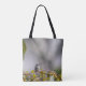 A photograph of a hummingbird perched on the branch of a leafy shrub in a garden. Image Copyright ©2024 Kimberly J Tilley. zazzle.com/store/developingnature