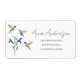Pretty address label featuring male and female Costa's hummingbirds and a flower. The font style, font size and colour can be changed by clicking on "Edit Design". Costa's hummingbirds can be found in the the southwest United States and northwest Mexico.