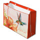 Make gift giving easy with this stunningly beautiful hummingbird and orange hibiscus flower large gift bag.
