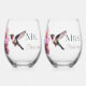 Hummingbird and Hibiscus Mr. and Mrs. Stemless Wine Glass
