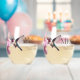 Personalise unique keepsake for your wedding reception with a set of Hummingbird and Hibiscus Mr. and Mrs. Wedding Wine Glasses. Glass design features a pair of bright pink hibiscus flowers with a ruby throated hummingbird. Personalise with the groom and bride's surname. Additional wedding stationery available with this design as well.