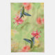 Hummingbird and Pink Lily on Floral Pattern Tea Towel