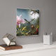 Gorgeous vintage Painting of tropical Hummingbird Birds and an Orchid Flower in a jungle rain forest is on this Wall Clock.