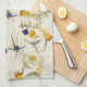 Awesome collage of vintage botanical fine art of exotic blue Spatuletail Hummingbird Birds and yellow Amarylis/Daffodil/Narcissus (with lots of botany notes) Family of Flowers and Leaves is on this Kitchen Towel. Images are public domain due to expired copyright. Collage is by me.