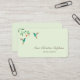 Business card featuring two beautiful turquoise hummingbirds on a light green background. The font style, font size and color can be changed by clicking on "Edit by using the Design Tool".