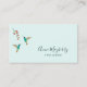 Business card featuring two beautiful hummingbirds on a pale blue background. The font style, font size and colour can be changed by clicking on "Edit this Design".