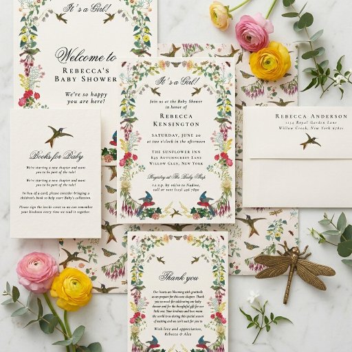 Hummingbird Butterfly Garden Flowers Botanical Wrapping Paper