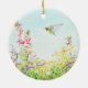 A Ruby-Throated Hummingbird hovering among the wildflowers. Flittering about for nectar from each. One of the friendly neighbours that often come to visit along the Georgian Bay. Painted by Pamela Hallock from the 2020 Collection of Georgian Bay Watercolors.