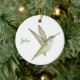A color pencil drawing of a female ruby throat hummingbird adorns this customizable Christmas ornament! Personalize by changing the text as you wish!