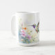 A colourful Hummingbird, flying free among the flowers. Style Pencils and watercolor.