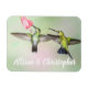 Personalized magnet featuring two green-crowned brilliant hummingbirds gracefully flying side by side together and sharing a red flower in a Costa Rican cloud forest. You can easily personalize with a name, a couple's names or other text. Beautiful unique gift for couples, a romantic partner, as well as bird, nature and garden lovers. Photo taken at Bosque de Paz Reserva Biologica, Alajuela, Costa Rica.