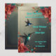 Celebrate your special day with this elegant wedding invitation featuring two vibrant hummingbirds in mid-flight, surrounded by lush tropical flowers and delicate foliage. The dark botanical background adds a touch of sophistication, while the intricate floral border with rich hues of blue, red, and orange creates a striking contrast. Accented with a subtle gold frame, this design exudes romance and timeless beauty, perfect for nature-inspired, garden, or tropical-themed weddings. Let this exquisite artwork set the tone for your unforgettable celebration.
