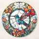 Hummingbird Faux Stained Glass Bird Round Paper Coaster