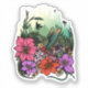 This vibrant graphic design captures the essence of springtime in a lush garden, where a delicate hummingbird flits gracefully among a tapestry of colourful flowers. The scene is bursting with life, featuring a rich palette of blooming blossoms in shades of pink, yellow, and purple, contrasted by the deep greens of flourishing trees that sway gently in the warm breeze. Sunlight filters through the leaves, casting a golden glow over the entire landscape, highlighting the iridescent feathers of the hummingbird as it hovers, poised to sip nectar from a nearby bloom. This enchanting portrayal invites viewers to immerse themselves in the beauty of nature, evoking feelings of joy, tranquillity, and the wonder of the outdoors.