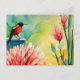 A vibrant watercolor painting captures the grace of a hummingbird in a garden, with vivid hues that bring the scene to life. From the delicate wings to the bright colours of the flowers. Perfect for nature lovers and bird watchers alike!