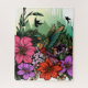 This vibrant graphic design captures the essence of springtime in a lush garden, where a delicate hummingbird flits gracefully among a tapestry of colourful flowers. The scene is bursting with life, featuring a rich palette of blooming blossoms in shades of pink, yellow, and purple, contrasted by the deep greens of flourishing trees that sway gently in the warm breeze. Sunlight filters through the leaves, casting a golden glow over the entire landscape, highlighting the iridescent feathers of the hummingbird as it hovers, poised to sip nectar from a nearby bloom. This enchanting portrayal invites viewers to immerse themselves in the beauty of nature, evoking feelings of joy, tranquillity, and the wonder of the outdoors.