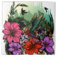 This vibrant graphic design captures the essence of springtime in a lush garden, where a delicate hummingbird flits gracefully among a tapestry of colourful flowers. The scene is bursting with life, featuring a rich palette of blooming blossoms in shades of pink, yellow, and purple, contrasted by the deep greens of flourishing trees that sway gently in the warm breeze. Sunlight filters through the leaves, casting a golden glow over the entire landscape, highlighting the iridescent feathers of the hummingbird as it hovers, poised to sip nectar from a nearby bloom. This enchanting portrayal invites viewers to immerse themselves in the beauty of nature, evoking feelings of joy, tranquillity, and the wonder of the outdoors.