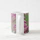 Pretty picture of a hummingbird, pink flowers and a glowing magical flower on a green background.