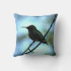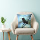 This lovely throw pillow features a tiny hummingbird perched on a branch, silhouetted against a luminous blue sky. The image is repeated on the back.