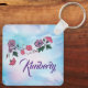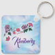 Personalise this Unique "One of a Kind" Hummingbird Keychain! It Features a Hummingbird Sipping Nectar from Beautiful Large Pink & Purple Flowers on a Purple and Pink Cloud Background!