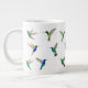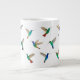 Cute mug for hummingbird lovers featuring several species of colourful hummingbirds, such as a Fiery-throated Hummingbirds, Golden-tailed Sapphire, Azure-crowned Hummingbird and Sapphire-bellied Hummingbirds, Broad-billed, Violetear, Coronet and Glittering Starfrontlet Hummingbirds. Images taken from original watercolor paintings by Christiane Dobbins.