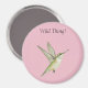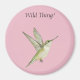 A colour pencil drawing of a female Ruby Throat Hummingbird adorns this 'Wild Thing!' magnet.