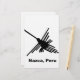Famous Nazca Lines hummingbird in black with text. Image from the Nazca desert, Peru.