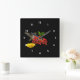This colourful, whimsical wall clock features a ruby-throated hummingbird visiting red and yellow zinnias. The bird and flowers are set off by a pure black background. This would be the perfect gift for a gardener!