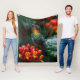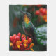 Hummingbird Perched on Bright Flower Fleece Blanket