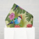 Beautiful and Colorful Hummingbird resting on a Branch, surrounded by Hibiscuses and Leaves, Watercolor Style Vector Illustration Copyright BluedarkArt.