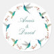 Pretty wdding sticker featuring a watercolor wreath of hummingbirds and botanical branches. The font size and font style can be changed by clicking on "Edit using design tool". All hummingbird images are taken from my original watercolors.