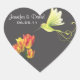 A hummingbird & tulips wedding favour sticker to coordinate your special day. Fully customisable.