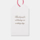 The quality and weight of the paper used was excellent. I love the feminine floral design. I gave received so many compliments on the unique cut of the tag. I also use these tags as a business card. This is my 3rd time ordering this design. I love it! I was very pleased with the printing. I was excited that I was able to print separate messages on both sides of the tag. Very clean look.