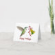 Cute happy holidays card with a hand-painted Anna's hummingbird carrying a bell. The inside is left empty for your own message.