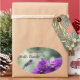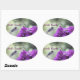 Hummingbird with purple dahlias bookplate oval sticker