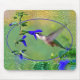 This design features an oval frame of stained glass surrounding a delicate hummingbird feeding at a flower.