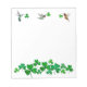 Cute notepad featuring three hummingbirds carrying clover leaves.